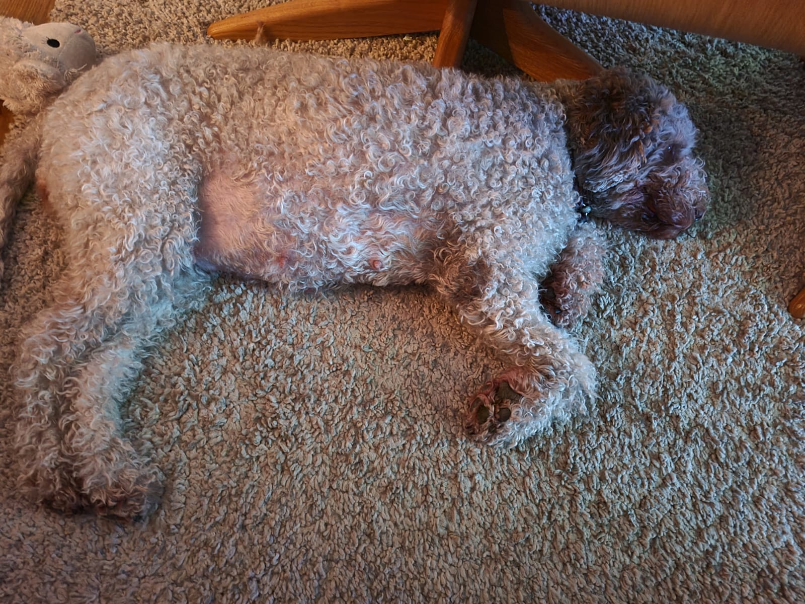 Tag 55 16.03.2022 Es ist der Wahnsinn wie die Welpen jetzt wachsen. Ameas Bauch verändert sich schnell. Unserer "Murmel"geht es aber gut. Viel Ruhe und schlaf braucht sie. Die Mahlzeiten gestalte ich klein .Amea stöhnt sonst und wirkt im Margen sehr belastet, wenn die Portion groß ist. Es gibt 5x am Tag Reico und zwischendurch zu Schlickern. Hirschknöpfle gehen immer :-)